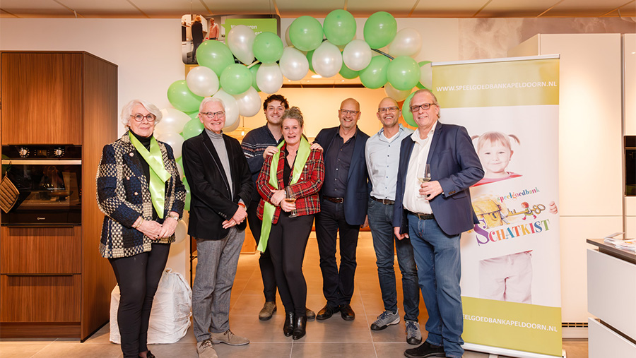 Rutger-Jan kondigde de samenwerking aan met twee lokale goede doelen die zichzelf kwamen presenteren: Stichting BabyJump (www.babyjump.nl) en Stichting Speelgoedbank Apeldoorn ‘De Schatkist’(www.speelgoedbankapeldoorn.nl). I-KOOK Apeldoorn zal voor beide doelen de komende periode €50,- per verkochte keuken doneren.